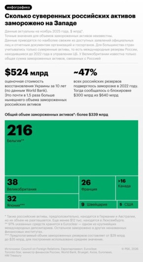 Какой объем суверенных российских активов находится в каждой стране — в инфографике РБК.РБК в Telegram и MAX