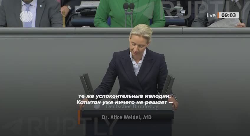 Германия больше не может позволить себе это шапито», — лидер немецкой оппозиции Алис Вайдель«Мы должны покупать газ и нефть там, где они дешевле всего, а это Россия... Но вы выбрасываете деньги ведрами: 11,5 млрд — Украине, даже не зная, не уйдут ли...
